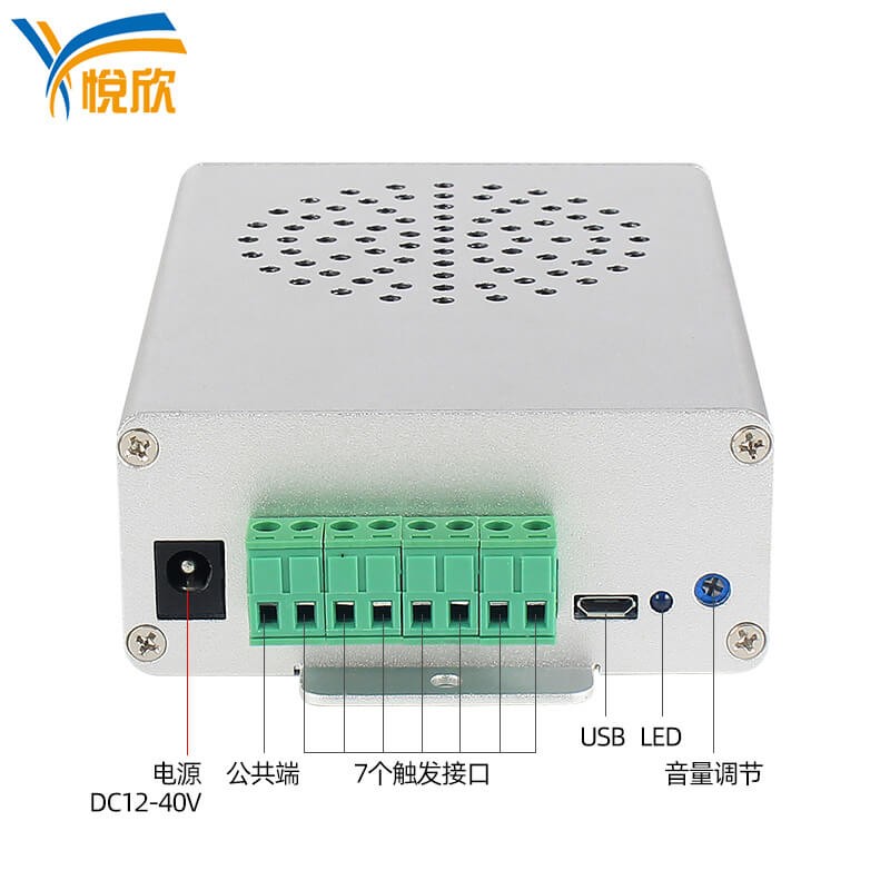 ±ØÓ®ÑÇÖÞYX8315×Ô½ç˵ÓïÒô²¥·ÅÆ÷£¬ÊôÓÚ¹¤ÒµÓïÒôÌáÐÑÆ÷£¬½ÓͨµçÔ´ºÍ¿ª¹Ø¼´¿ÉʹÓ㬿Éƾ¾Ý´¥·¢¶Ë¿ÚÑ¡Ôñ²¥·ÅµÄÓïÒô£¬¿ÉUSB¸üÐÂÓïÒôÎļþ£¬±¾²úÆ·ºÏÓÃÊÕ·ÑÕ¾ÓïÒô£»Í£³µ³¡£»ÆðÂä¸ËÌáÐѵij¡Ëù»ò¹¤ÒµÉ豸²Ù×÷ÌáÐÑ£»Æô¶¯ÓïÒô£»Òì³£ÌáÐѵȡ£